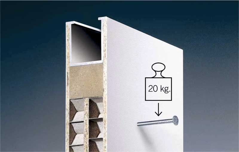 La pared ideal es modulable y flexible para la realización de todas configuraciones posibles. Un sistema muy rentable gracias a un montaje y desmontaje rápido, una larga vida útil y muy resistente gracias a su marco perimetral oculto de aluminio. Los revestimientos removibles y pintables lo hacen un producto versátil y utilizable por un largo tiempo, intemporal y de un diseño puro
